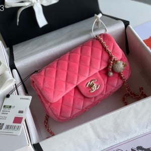 Chanel Classic Flap With Charm Chain With CC Details On Strap Bag 20cm Shiny Gold Hardware Velvet/Lambskin Leather Fall/Winter 2020 Collection