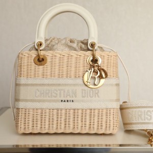 Christian Dior Lady Dior Bag 24cm Silver Hardware Bead Embroidered Satin/Lambskin Leather Spring/Summer 2020 Collection