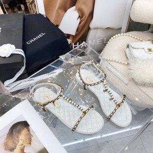 Chanel Charm Pearl Embellished T Sandals Lambskin Leather Spring/Summer 2022 Collection