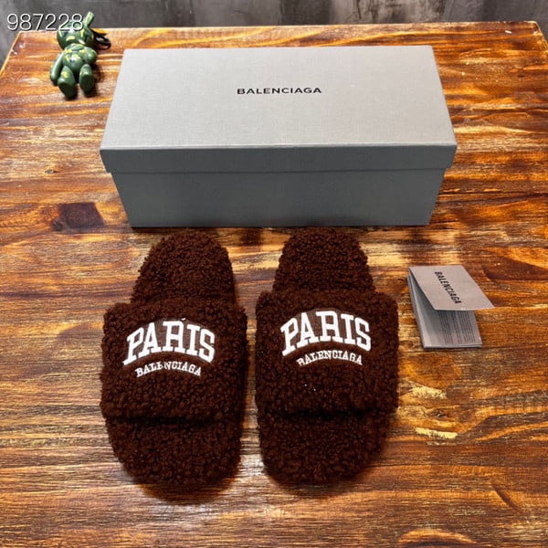 Balenciaga Paris Logo Furry Slides Unisex Shoes Fall/Winter 2022 Collection