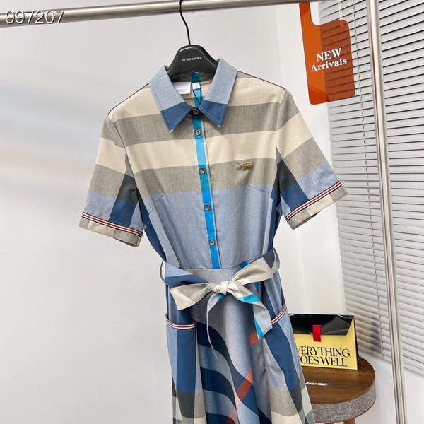 Burberry Button Up Pleat Check Tie Up Cotton Dress Fall/Winter 2022 Collection