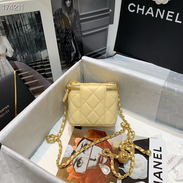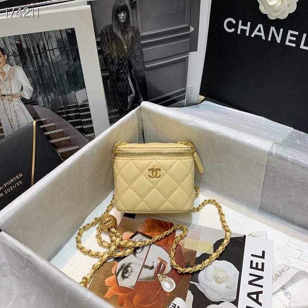 Chanel Mini Vanity Case Bag with Charm Chain 10cm Lambskin Leather Gold Hardware Spring/Summer 2021 Collection
