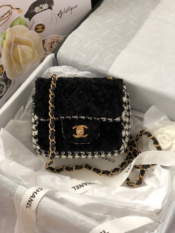 Chanel Woven Flap Bag 18cm Wool/Cotton Gold Hardware Fall/Winter 2020 Collection