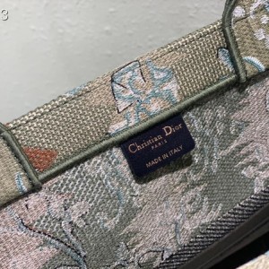 Christian Dior Book Tote Bag 42cm M1286 Dior Brocart Vert Métallisé Embroidery Canvas Fall/Winter 2022 Collection