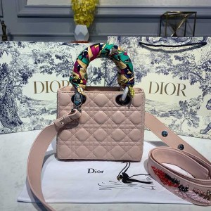 Christian Dior Lady Dior Bag 20cm Silver Hardware with Embellished Bag Strap Lambskin Leather Spring/Summer 2020 Collection