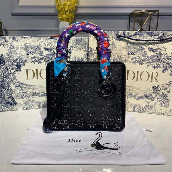 Christian Dior Lady Dior Bag 24cm Silver Hardware Bead Embroidered Satin/Lambskin Leather Spring/Summer 2020 Collection