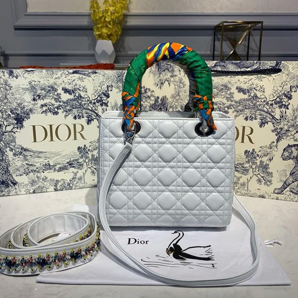 Christian Dior Lady Dior Bag 24cm Silver Hardware with Embellished Bag Strap Lambskin Leather Spring/Summer 2020 Collection