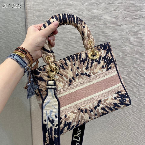 Christian Dior Lady Dior D-Lite Tie & Dior Bag 24cm with Gold Hardware Embroidery Canvas Spring/Summer 2021 Collection