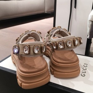 Gucci Crystal Open Track Velcro Sandals Calfskin Leather Spring/Summer 2020 Collection