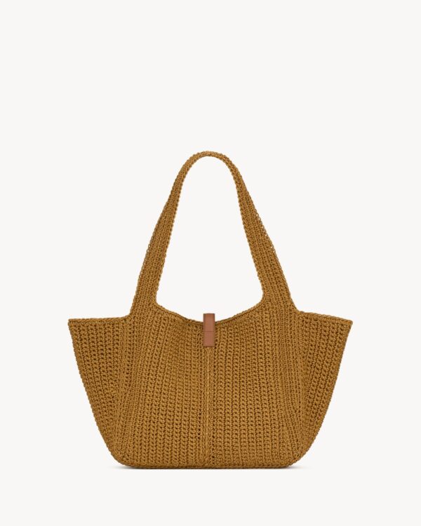 Supple tote in cord, made with certified linen, and vegetable-tanned leather, featuring an inner zip pocket and leather tab closure decorated with the CASSANDRE.