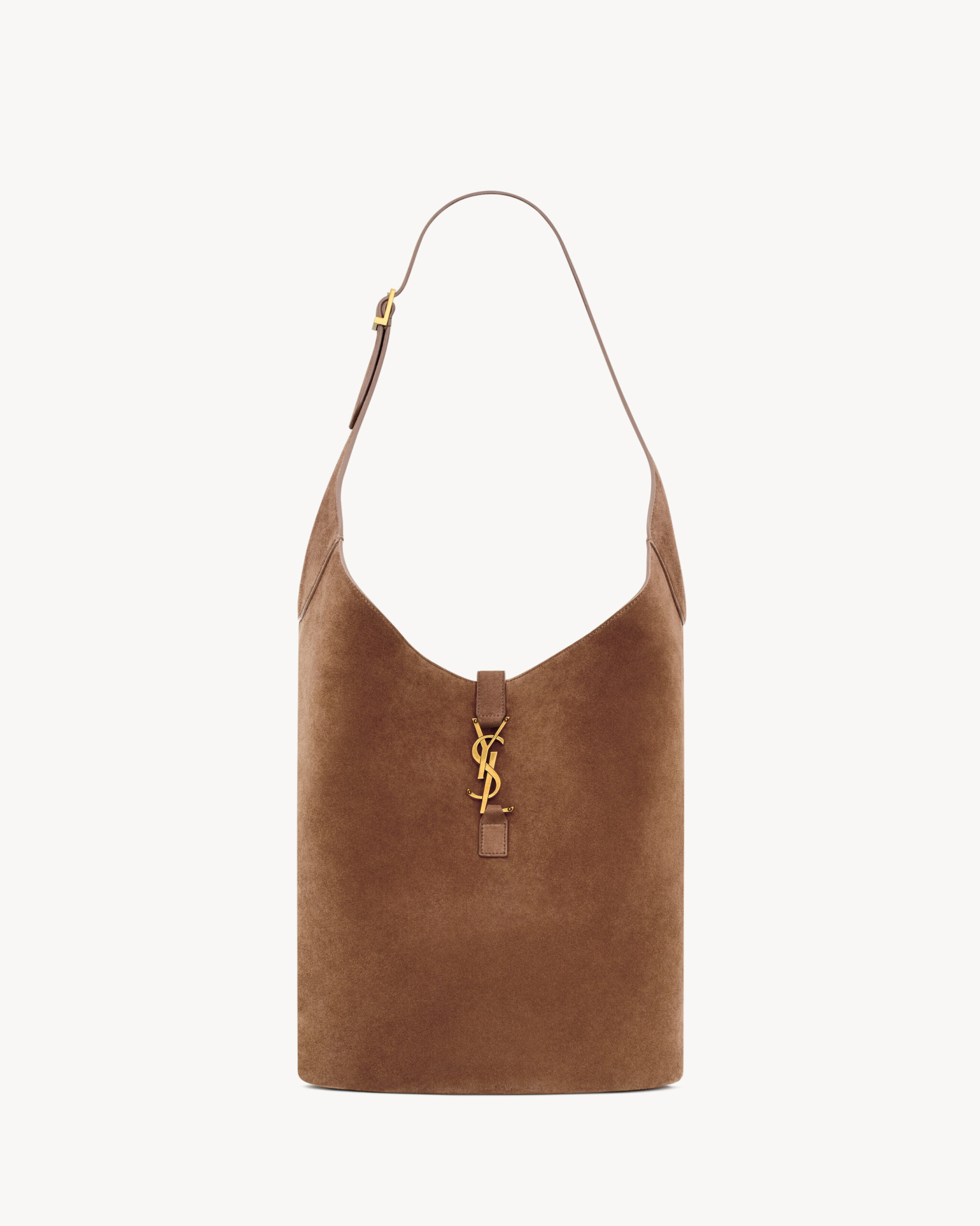 The hobo bucket version of the iconic LE 5 À 7 in suede, defined by its leather tab closure decorated with the CASSANDRE.