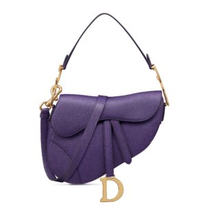 Maria Grazia Chiuri brings a fresh update to the iconic Saddle bag. Crafted in deep purple grained calfskin, the legendary design features a Saddle flap with a D stirrup strap and magnetic pull, as well as an antique gold-finish metal CD signature on either side of the top handle. Equipped with a thin, adjustable and removable strap, the Saddle bag may be carried by hand, worn over the shoulder or crossbody.
