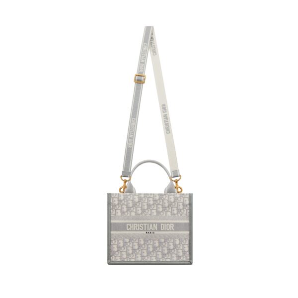 Small Dior Book Tote Gray Dior Oblique Embroidery and Calfskin (26.5 x 22 x 14 cm)